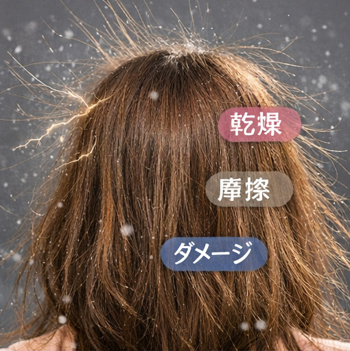 乾燥した髪同士や服とこすれることで電気が発生し、パチパチ広がってしまいます。